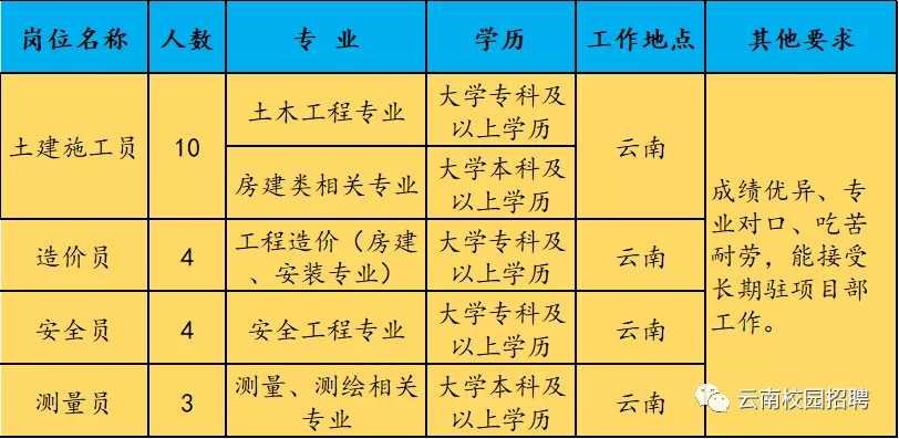 三、云南建投第七建設(shè)有限公司2020年校園招聘需求