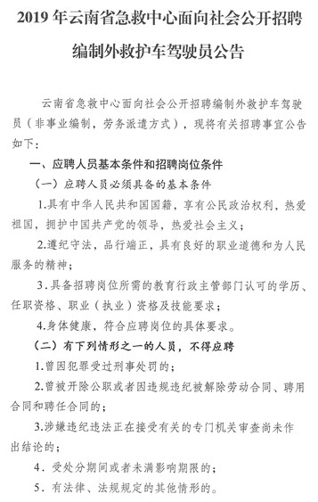 2019年云南省急救中心面向社會公開招聘編制外救護(hù)車駕駛員公告