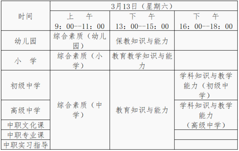 (二)考試時(shí)間:2021年3月13日,所有考試科目均采用紙筆方式進(jìn)行,具體安排如下: