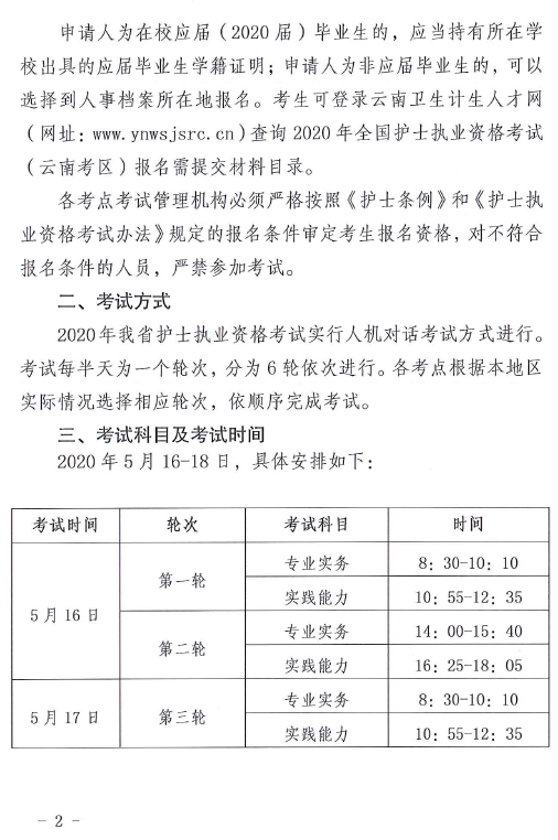云南省關(guān)于2020年全省護(hù)士執(zhí)業(yè)資格考試有關(guān)問題的通知